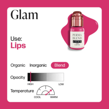 Le Pigment Perma Blend – Glam by Carla Ricciardone est Extrait du coffret Enhance de Carla Ricciardone. Glam est un pigment un rose riche éclatant, chaud et neutre. Il peut s’utiliser seul ou comme modificateur intense pour illuminer ou intensifier la couleur. Ce pigment est conçu pour être ajusté à l’infini et offre une gamme de couleurs infinie, notamment lorsqu’il est associé à la base et aux modificateurs du kit Embody.