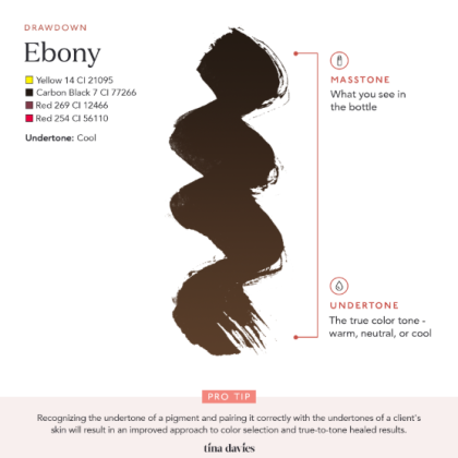 Le Pigment Perma Blend – Ebony by Tina Davies de la gamme Perma Blend Luxe est un pigment brun-noir foncé et froid, idéal pour les clientes souhaitant des sourcils audacieux et bien définis. En effet, ce pigment brun-noir froid offre un noir mat pour un look audacieux et saisissant !