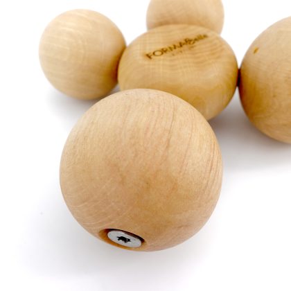 Le bois utilisé est du charme. En effet, il est considéré comme hypoallergénique car ses propriétés limitent la libération de particules allergènes. De plus, il est trempé dans de l’huile de lin ce qui leur confère une pellicule bloquant les échanges avec l’extérieur.