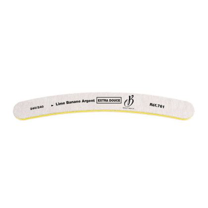 Lime Banane Argent – Extra Douce 240/240 – Cette lime est spécialement conçue pour limer en douceur tous types d’ongles naturels. Sa forme incurvée permet d’épouser parfaitement le contour de l’ongle pour un travail précis, sans agresser ni fragiliser la plaque naturelle. Idéale pour les finitions délicates, elle offre un confort d’utilisation et un rendu net et soigné.