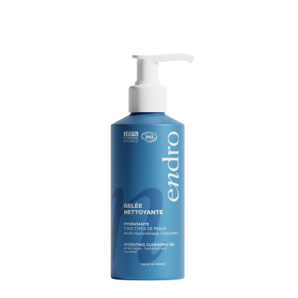 Gelée Nettoyante – Endro. Cette gelée nettoyante hydratante offre un nettoyage doux et rafraîchissant, adapté à tous les types de peau. Sa formule élimine efficacement les impuretés tout en préservant l’hydratation naturelle. La glycérine attire et retient l’eau, pour une peau douce, souple et protégée contre la déshydratation. L’extrait de concombre apaise et apporte une sensation de fraîcheur immédiate. Enfin, l’acide hyaluronique aide à maintenir une hydratation optimale et à renforcer la barrière cutanée.