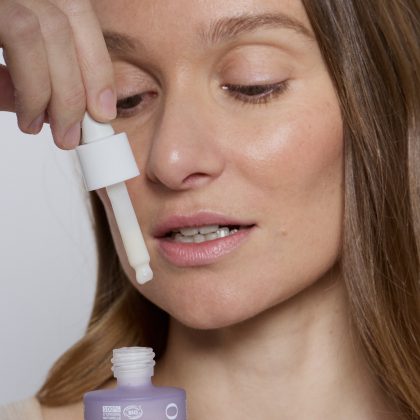 Ce sérum 100% d’origine naturelle a été formulé pour lisser et raffermir la peau. Concentré en collagène végétal et acide polyglutamique, reconnus tous deux pour leurs propriétés hydratantes, il aide à redonner elasticité et souplesse à la peau. En complément un actif à l’effet tenseur contribue à lisser les rides et ridules dès la première application.